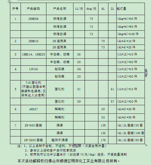 2019年10月1日國慶節,明邦化工為了回饋客戶,為幫助您更好的拓寬、穩定市場。本公司經過大量的市場調查精心推出如下市場競爭優勢明顯的汽車漆產品。